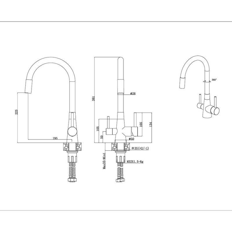 Кухненски смесител с 3 функции, gun grey, с глава Sedal, аератор Neoperl с 2 функции, меки връзки Tukai