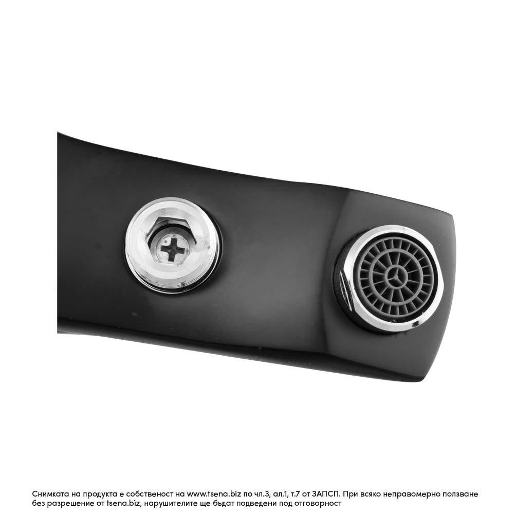 В комплекта на черен душ смесител за баня, душ батерия са включени: розетки, уплътнения и ексцентрици, с които можете да оберете луфтовете при монтажа на смесителя.