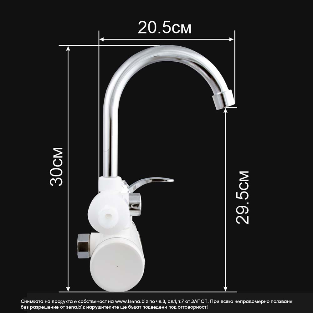 Времето за загряване на водата е до 5 сек.